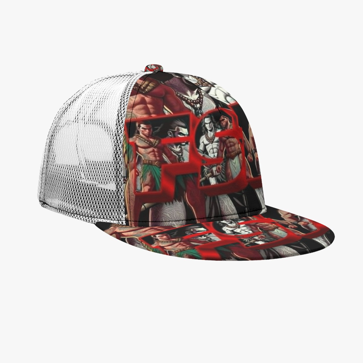 All-Over Print Black Buckle Flat-brimmed Mesh Cap With Box