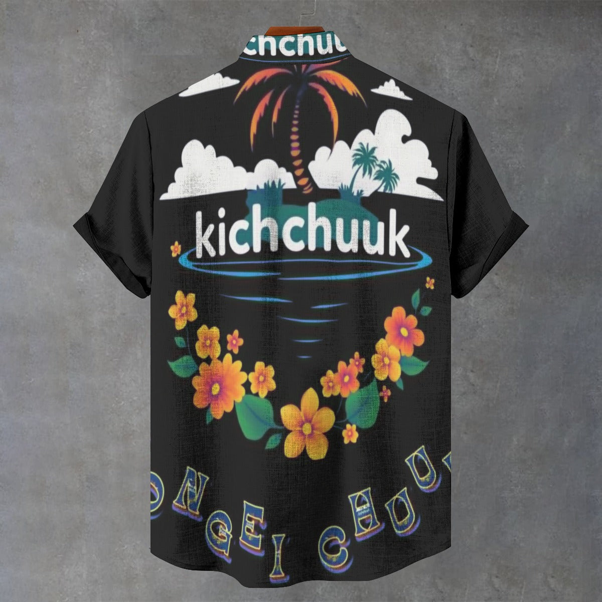 All-Over Print Men's Stand Collar Shirt|110GSM Imitation Flax