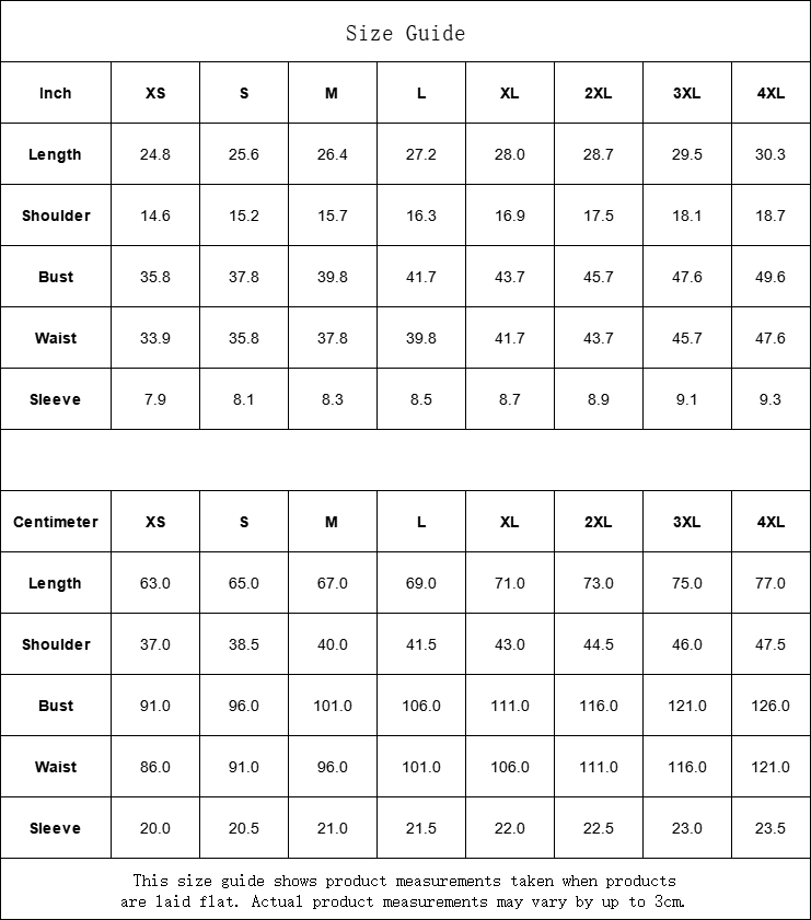| Centimeter | XS | S | M | L | XL | 2XL | 3XL | 4XL |
